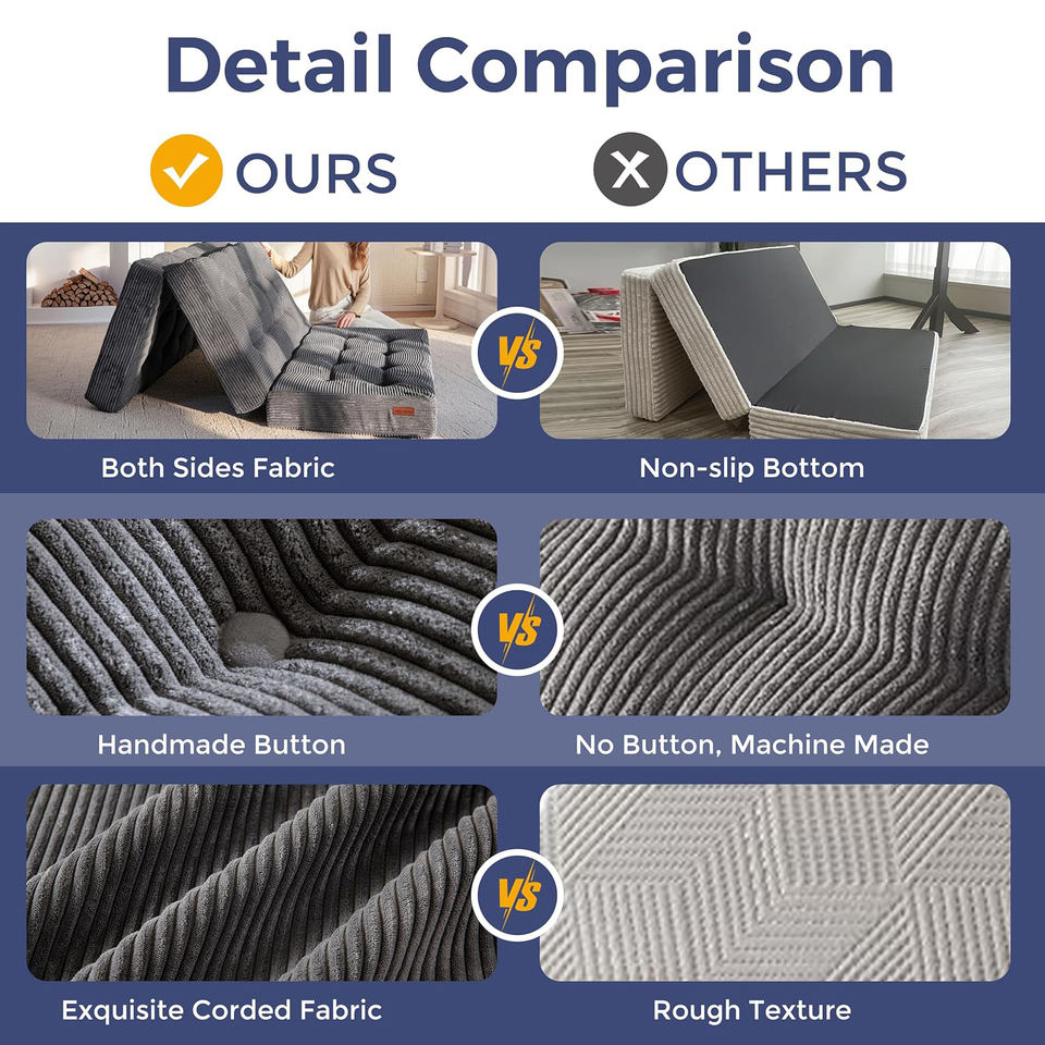 ที่นอนพับได้แบบสามตอน หนา 6 นิ้ว ที่นอนพับได้แบบมีโครง ที่นอนโฟมเต็มตัว ที่นอนพับได้สำหรับวางบนพื้น โซฟาสำหรับแขก ที่นอนเสริมแบบพกพา ที่นอนสำหรับตั้งแคมป์