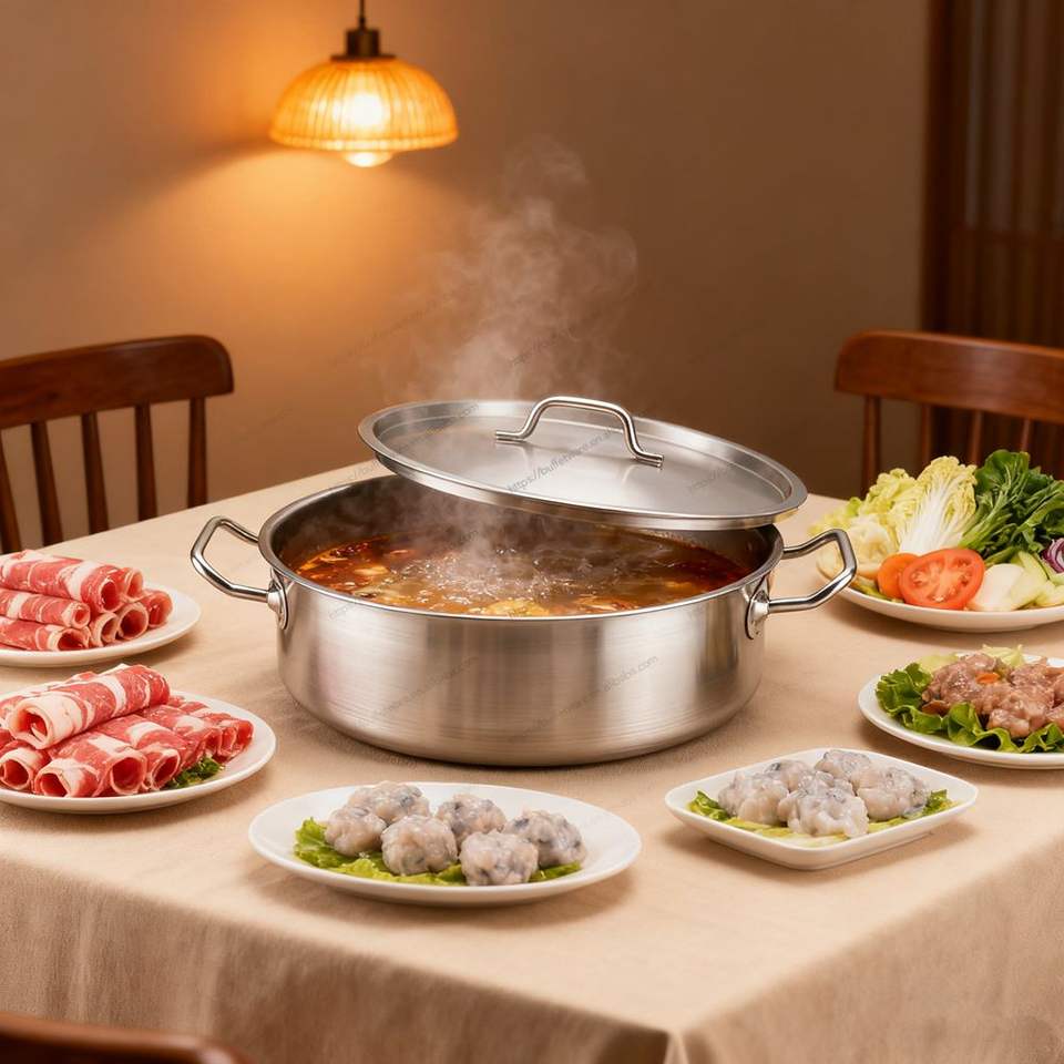 หม้อต้มซอสสแตนเลสสามชั้น6 LTR 8 LTR หม้อต้มซุปแบบเหนี่ยวนำสำหรับใช้ในเชิงพาณิชย์