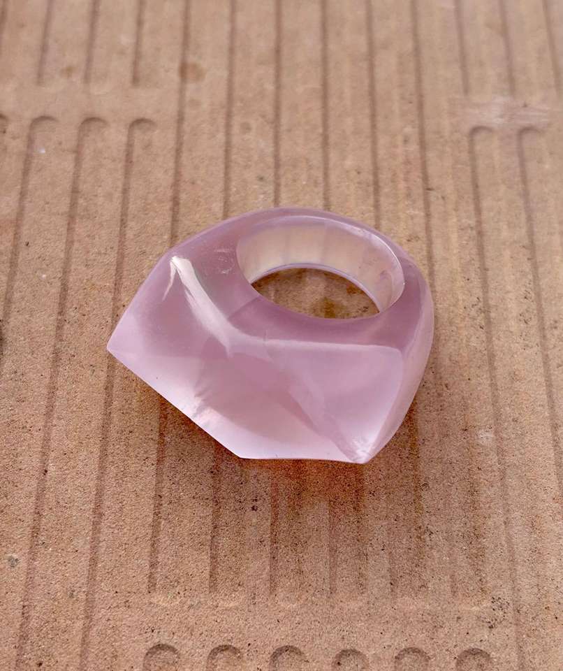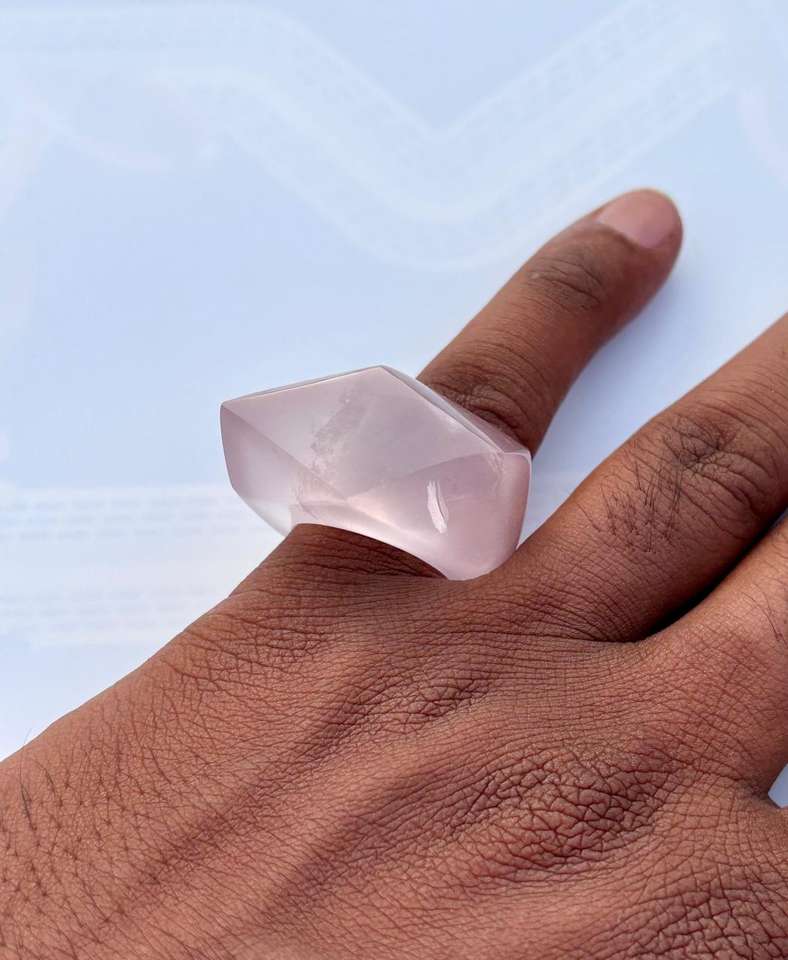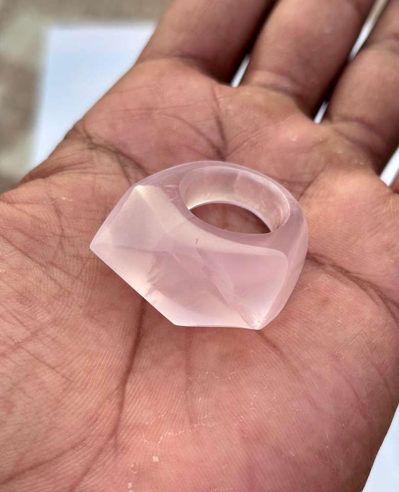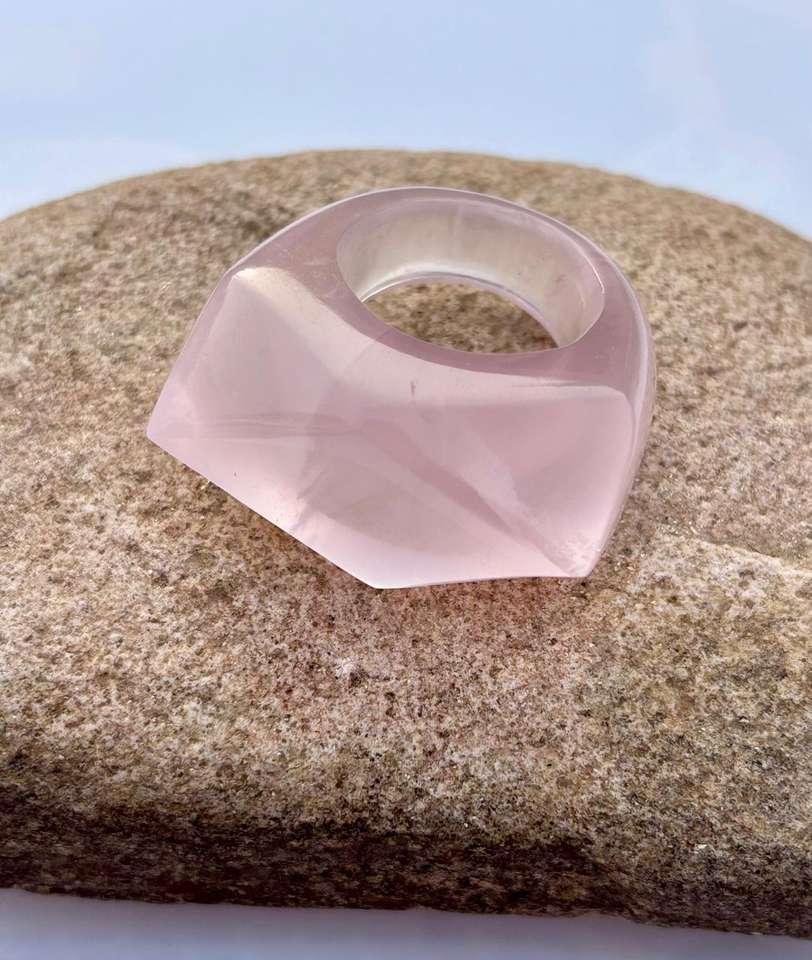 แหวนควอตซ์ทรงสามเหลี่ยมตัดรูปกุหลาบ