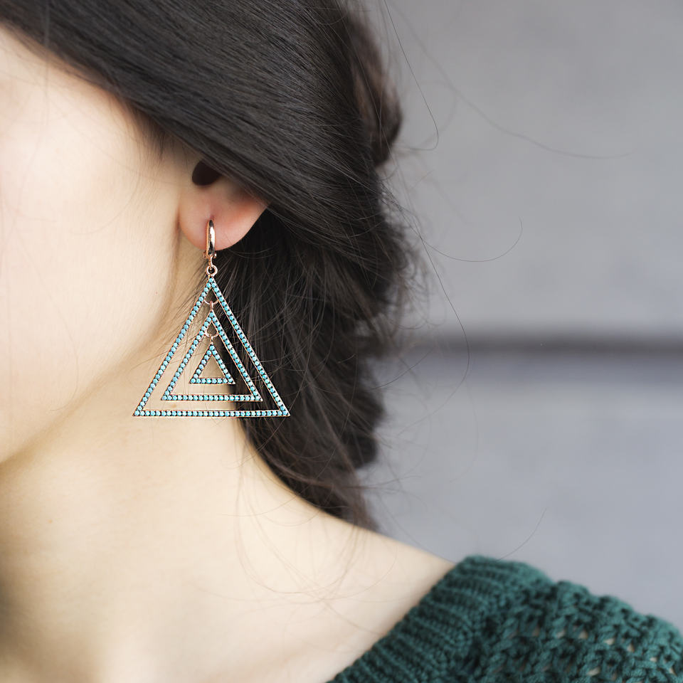 หินเทอร์ควอยซ์ดีไซน์ทรงสามเหลี่ยม925เทอร์ควอยซ์แบบตุรกีต่างหูแบบประณีต
