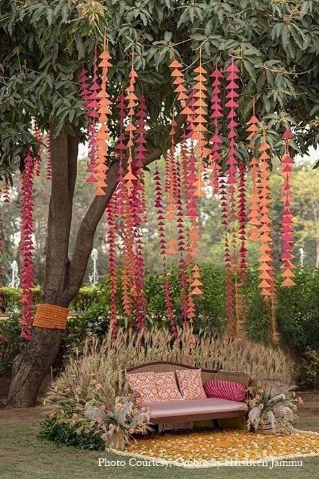 พวงมาลัยสายผ้าสามเหลี่ยม, ตกแต่งงานแต่งงานอินเดีย, ฉากหลังเวที, ตกแต่งเพดาน, มาลัยแต่งงาน, สายธง