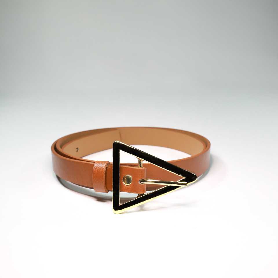 เข็มขัดผู้หญิงหัวเข็มขัดทองทรงสามเหลี่ยม สไตล์ลำลอง ชุบโลหะผสม ขนาดมาตรฐาน