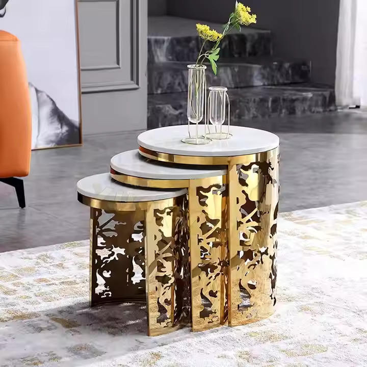 ชุดโต๊ะข้างหินอ่อนรูปทรงสามเหลี่ยม3ชิ้น