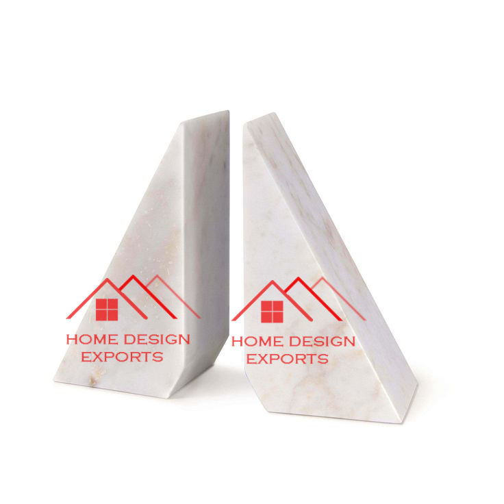 ที่ตั้งหนังสือหินอ่อนสีขาวรูปทรงสามเหลี่ยมสำหรับตกแต่งบ้านและสำนักงาน