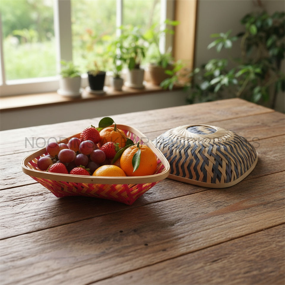 ตะกร้าไม้ไผ่สานด้วยมือทรงสามเหลี่ยมที่เก็บของแบบอเนกประสงค์อเนกประสงค์สำหรับเป็นของขวัญ