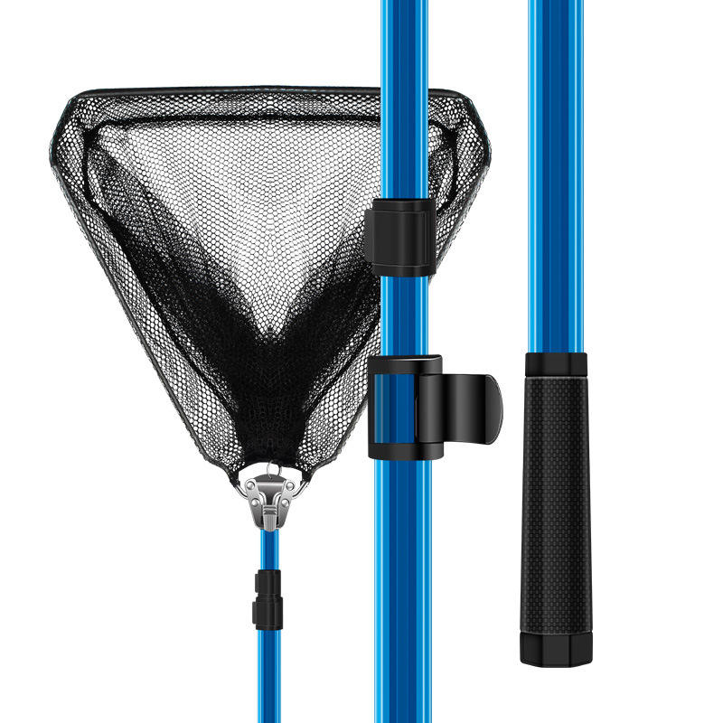 ตาข่ายดักปลาแบบสามเหลี่ยม พับได้ อลูมิเนียมอัลลอยด์ 1.8M 2.1M สีน้ำเงิน สีแดง คันเบ็ดตกปลาแบบพกพา ตาข่ายแข็งแรง น้ำหนักเบาพิเศษ