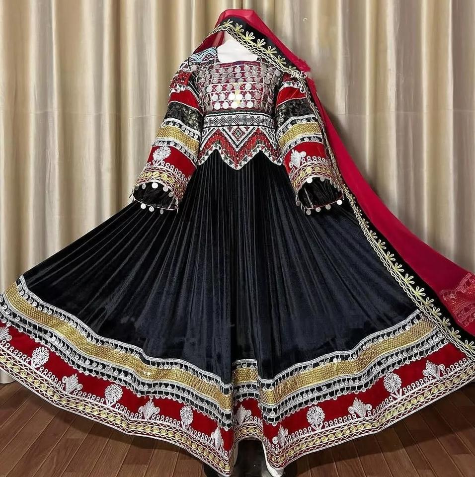 ชุดเดรสวินเทจชนเผ่ากุจิ ระบายอากาศได้ดี ผลิตในอัฟกานิสถาน ปากีสถาน เหมาะสำหรับงานปาร์ตี้ เสื้อคลุมแบบอัฟกานี ปาทานี ชุดเดรสหลากสีแบบดั้งเดิม