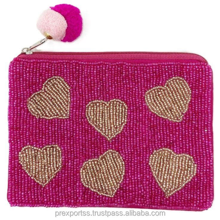 กระเป๋าลูกปัดลายชนเผ่ากระเป๋าถือแบบมีซิปปักลายเรขาคณิตทำด้วยมือกระเป๋าใส่เหรียญขนาดเล็กสไตล์พื้นเมืองสำหรับเป็นของขวัญงานปาร์ตี้