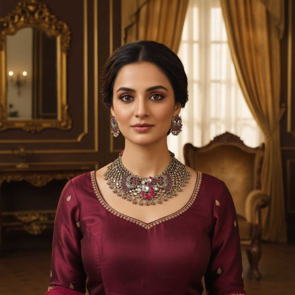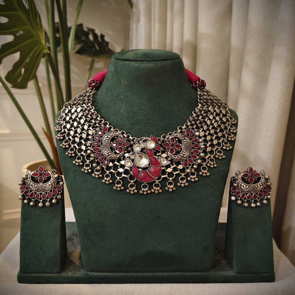 ชุดสร้อยคอดีไซน์ดอกไม้ทับทิมทับทิมประดับไข่มุก-วัฒนธรรมเครื่องประดับสำหรับงานเทศกาลและงานแต่ง