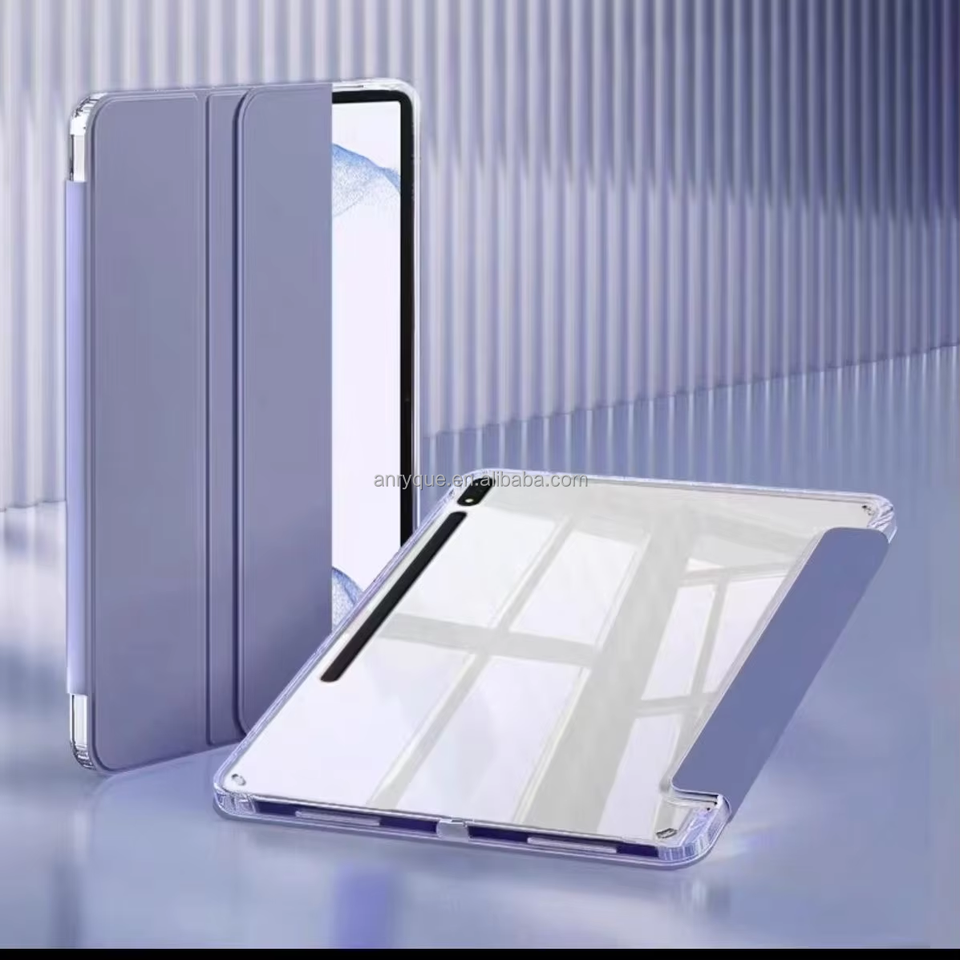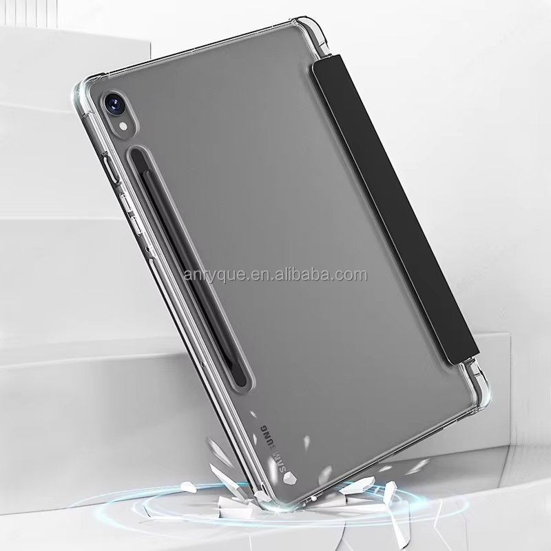 เคสแท็บเล็ตสามพับตั้งได้แบบแข็งสีดำใสสำหรับ Samsung Galaxy Tab S10 lite/ S10 FE S9 FE 10.9นิ้ว /tab S10 S9 S8 S7