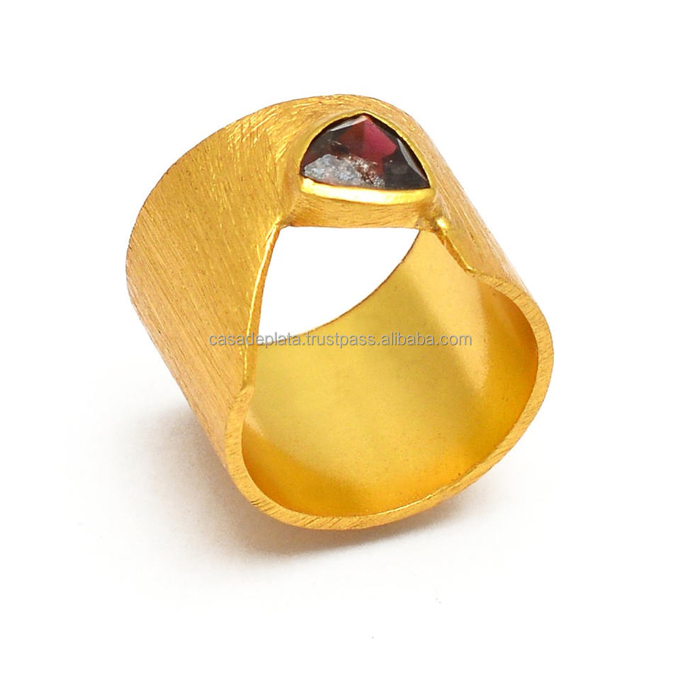 ล้านพลอยโกเมนตัด925เงินสเตอร์ลิงชุบทองคลาสสิกแหวนแฟชั่นสำหรับเป็นของขวัญวันครบรอบแต่งงานหรืองานเลี้ยง