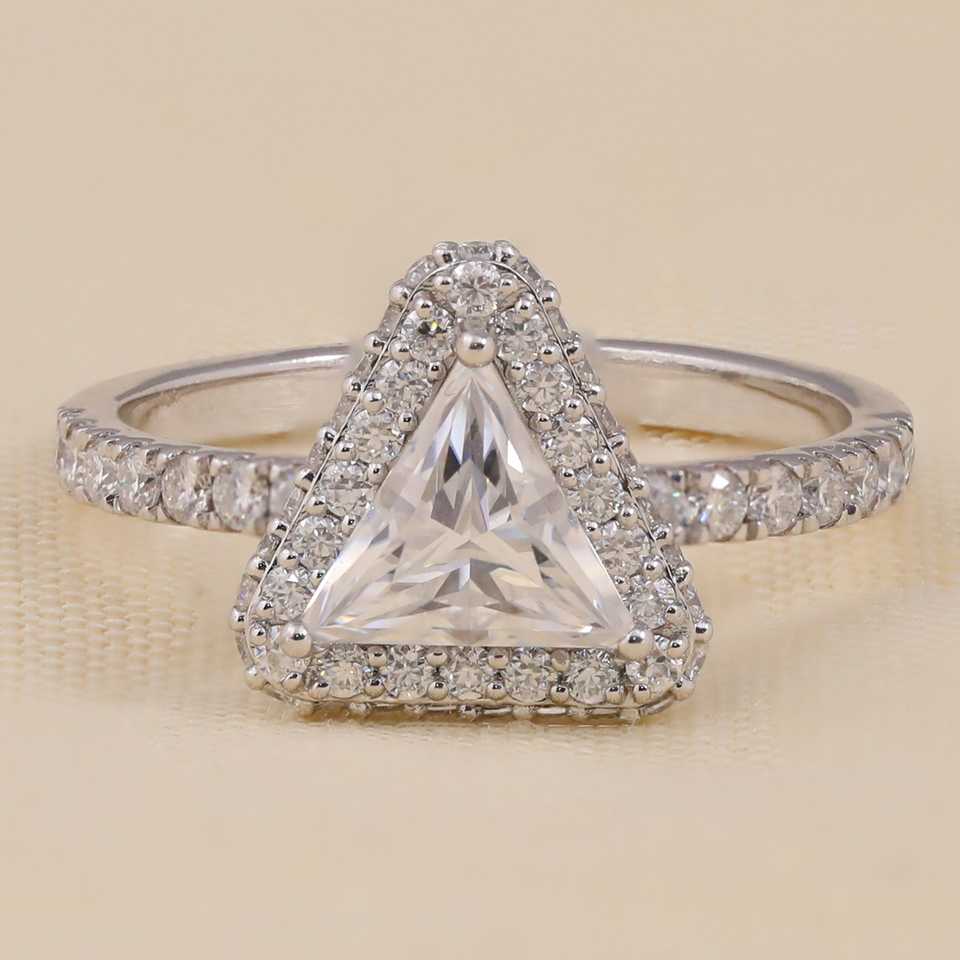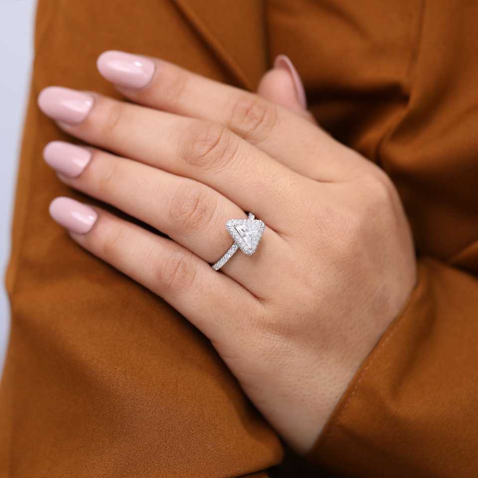 Trillion Cut Lab Grown Diamond Halo Engagement Ring Pave Band Sterling Silver Gold Options VS1 Clarity-Elegant Diamond Rings