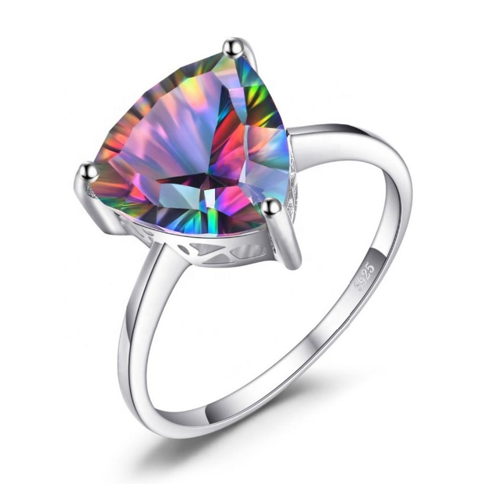แหวนแต่งงานเงินแท้ 925 ประดับพลอยมิสติกโทแพซทรงทริลเลียนคัทสำหรับผู้หญิง