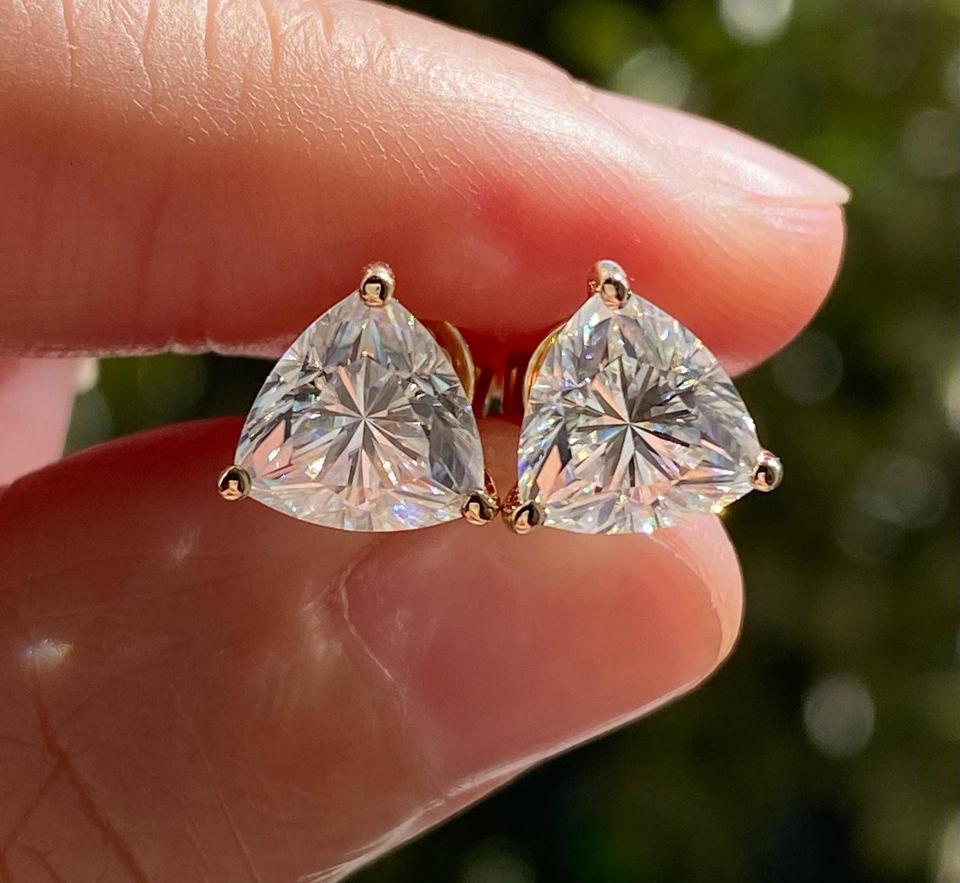ต่างหูสตั๊ดตัดล้านล้าน ล้านล้านตัดห้องปฏิบัติการต่างหูเพชรที่ปลูก 2 + 2 กะรัตต่างหูสตั๊ดเพชร CVD CVD ของขวัญทองคําเหลืองสําหรับเธอ