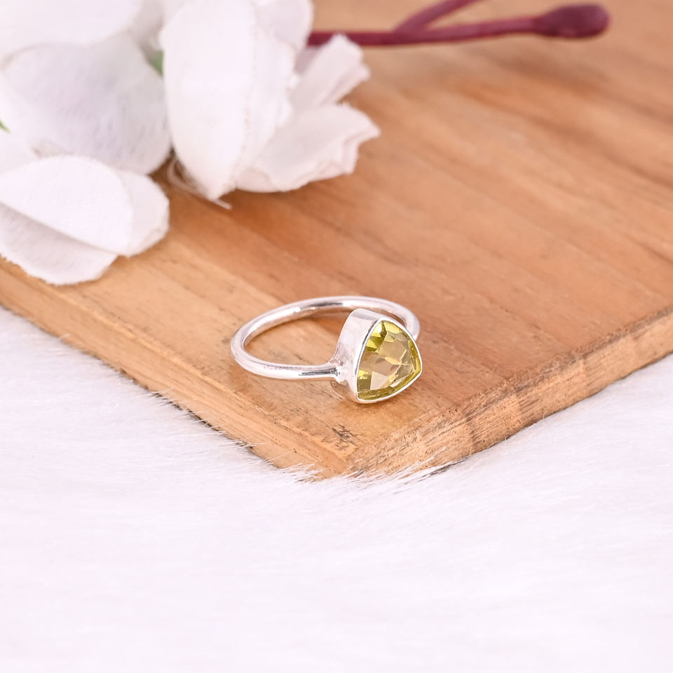 แหวนพลอยเพอริดอททรงทริลเลียนธรรมชาติ ตัวเรือนเงินแท้ 925 ประดับแบบฝังขอบ งานแฮนด์เมด สำหรับผู้หญิง แหวนดีไซน์โดดเด่น