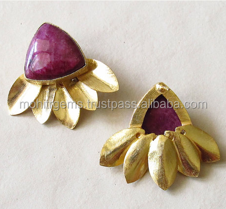 ต่างหูเม็ดเดี่ยวชุบทองรูปใบควอตซ์สีทับทิมรูปทรงล้านล้านสำหรับงานแต่งงานและงานหมั้น