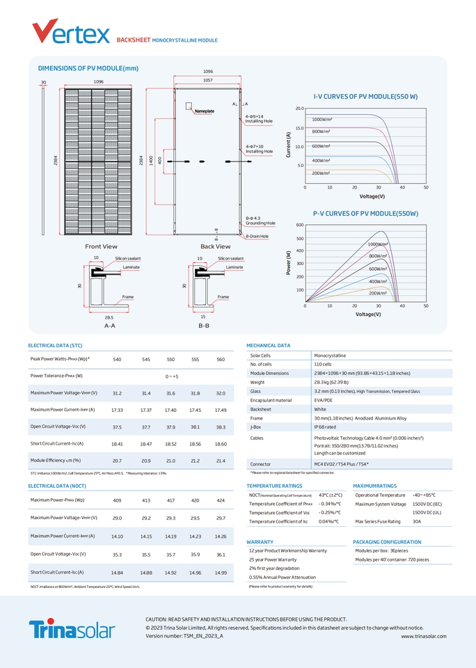 หมายเลขรุ่น:Trina Vertex(Backsheet) TSM-DE19 560W