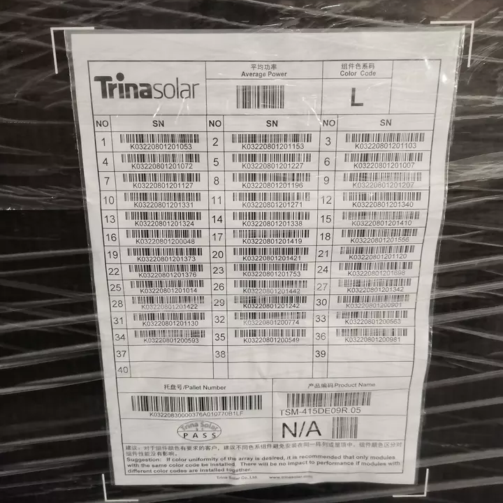 ราคาแผงโซลาร์เซลล์ Trina Solar TSM-425 DE09R.08 DE09R.05 410W 415W 420W 430W