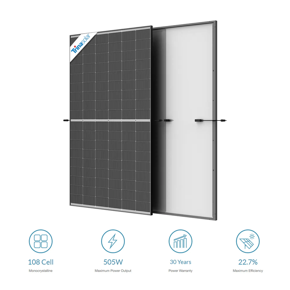 โมดูลแผงเซลล์แสงอาทิตย์แบบโมโนเฟสโมดูลแผงเซลล์แสงอาทิตย์สีดำทั้งหมดของทรินา TSM-NEG18R.25เวอร์เท็กซ์เอส + 505วัตต์