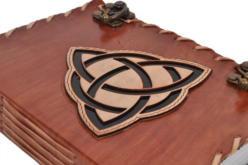 Trinity Knot Cut Work Design Handmade Genuine Leather Journal Hardcover Blank Notebook Or Diary With Double Antique Brass C-Lock