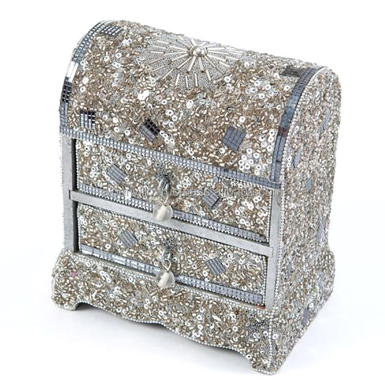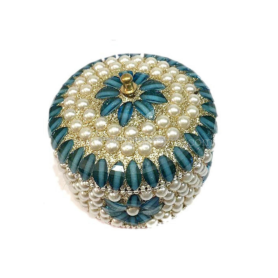 กล่องใส่เครื่องประดับโลหะอะลูมิเนียมสีขาวเคลือบเงาประดับลูกปัด กล่องใส่เครื่องประดับแบบส่วนตัวสำหรับงานแต่งงานแบบดั้งเดิม กล่องของขวัญสำหรับแขก