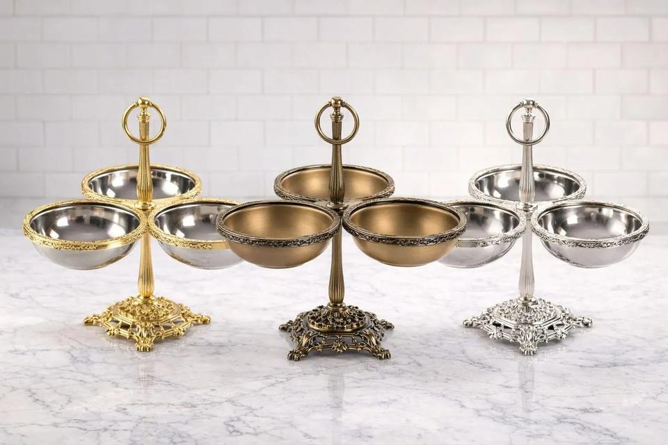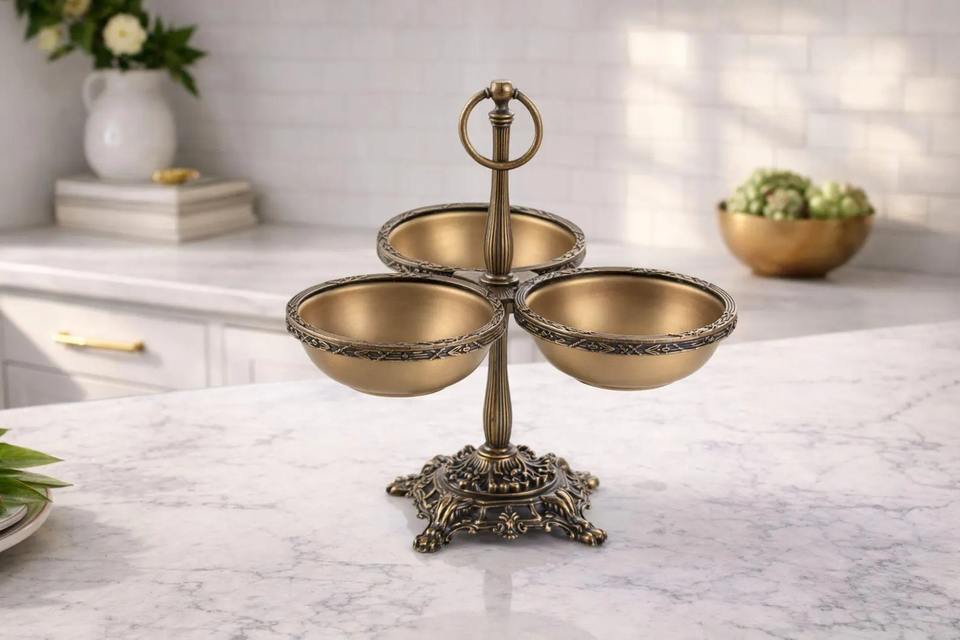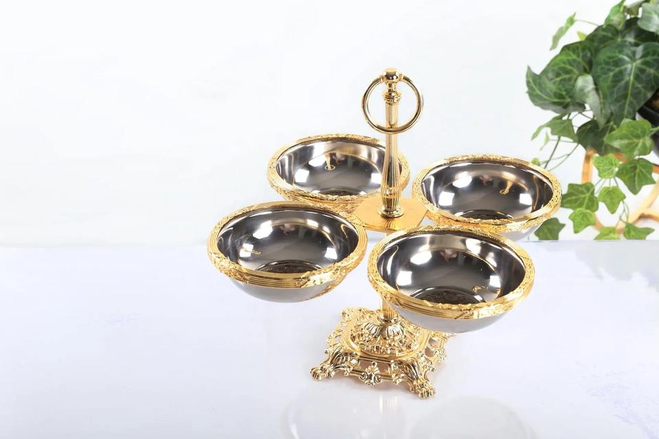 ขาตั้งเสิร์ฟช็อกโกแลตสามชั้น โลหะเคลือบทอง เหมาะสำหรับผลไม้อบแห้ง ช็อกโกแลต ใช้สำหรับจัดแสดงหรือมอบเป็นของขวัญ