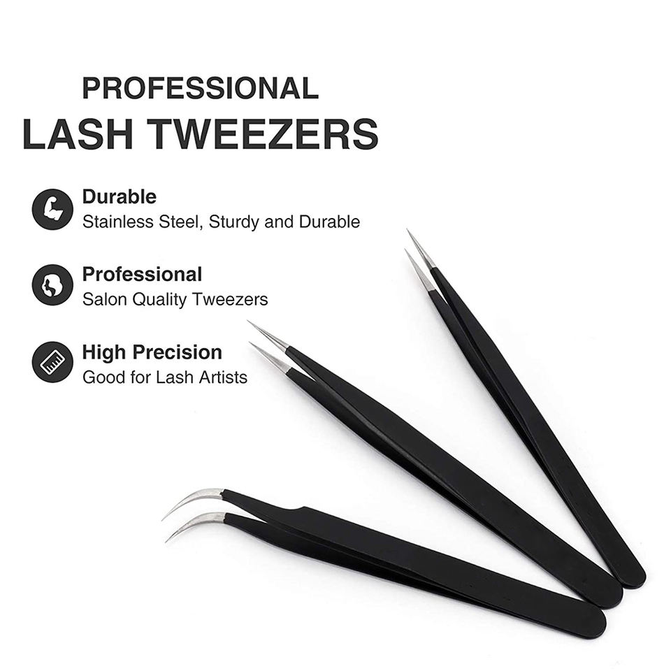 Triple Eyelash Tweezers Set 90 Degree & L Shape Stainless Steel Fiber Tip for Ultimate Precision in Lash Extensions