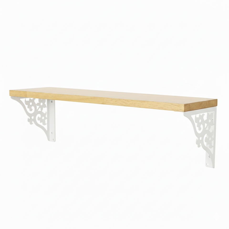 ชั้นวางของติดผนังไม้สีขาวลายดอกไม้สามชั้นขนาดใหญ่ ดีไซน์หรูหรา สำหรับตกแต่งห้องนั่งเล่น ห้องนอน ห้องน้ำ