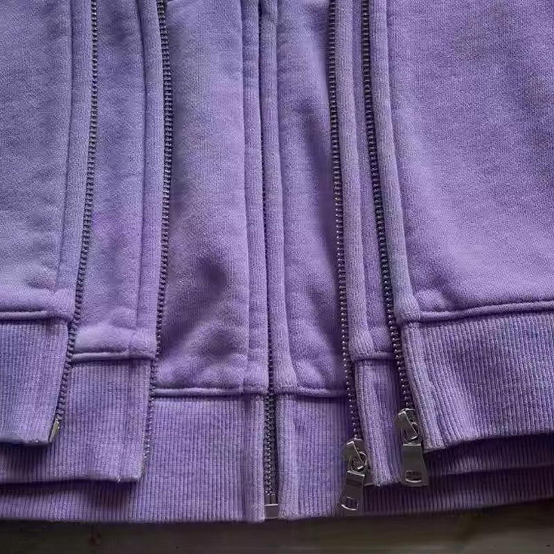 เสื้อมีฮู้ดมีซิปสามชั้นดีไซน์เป็นเอกลักษณ์เสื้อผ้าแนวสตรีทเฮฟวี่เวทวัสดุคุณภาพสูงเสื้อฮู้ดซิปสามชั้นแบบสั่งทำ