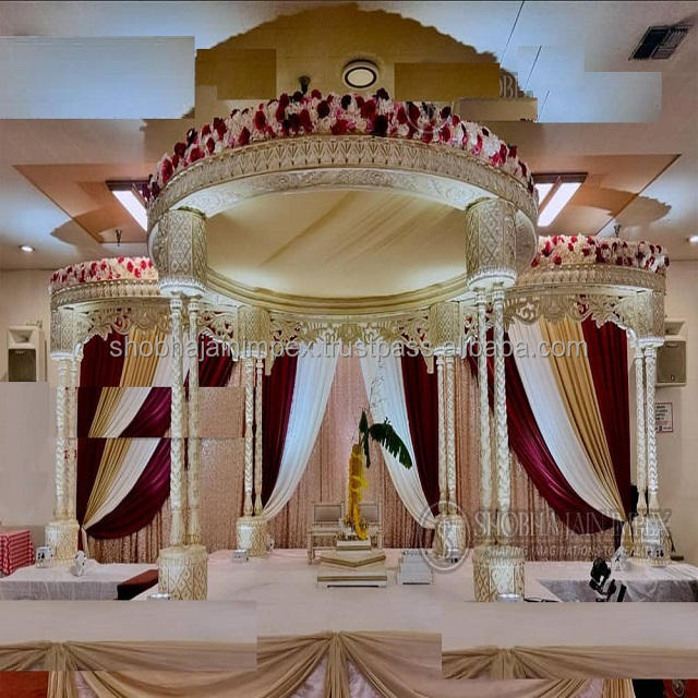 Triple Pole Portable Durable Wedding Mandap Decoration Indian Fiber Chairs Bride Party Supplies Custom Box Packaging New Model