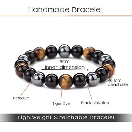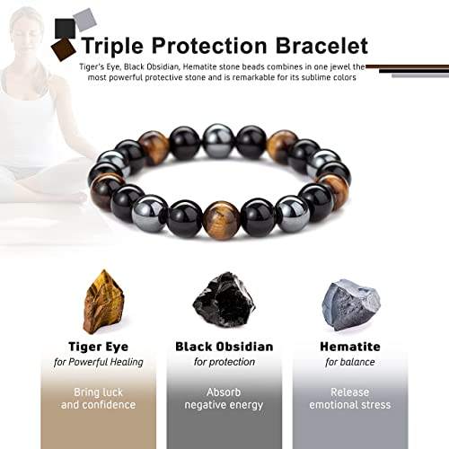 กำไลข้อมือคริสตัลรักษาแบบสามชั้นลูกปัดสีดำออกไซด์ตาเสือและออบซิเดียนขนาด10มม.