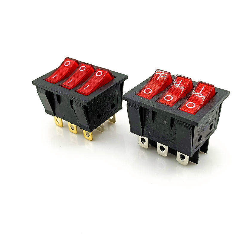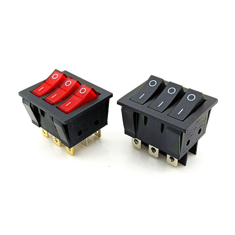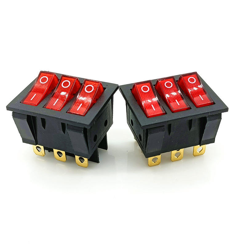 สวิตช์โยกสามขาสำหรับเครื่องใช้ไฟฟ้าในบ้านสวิตช์ไฟสองตำแหน่ง KCD5 250VAC ไฟแดงกำลังสูง IP20 20A