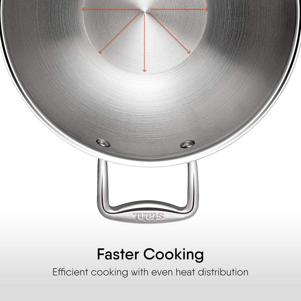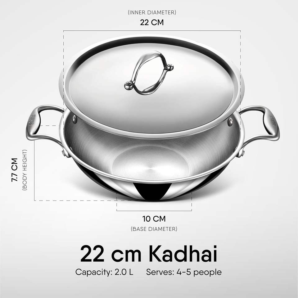 หม้อสเตนเลสสตีลสามชั้นพร้อมฝาปิด ขนาด 2.0 ลิตร 22 ซม. ผลิตด้วยมือ ใช้กับช่องแช่แข็งได้ ใช้กับเตาแม่เหล็กไฟฟ้าและเตาแก๊สได้