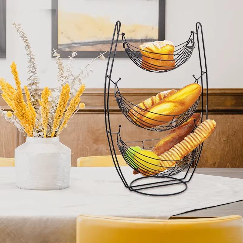 ตะกร้าผลไม้โลหะเคลือบสีดำสามชั้น เพิ่มความหรูหราให้กับการรับประทานอาหารทั้งแบบสบายๆ และเป็นทางการ