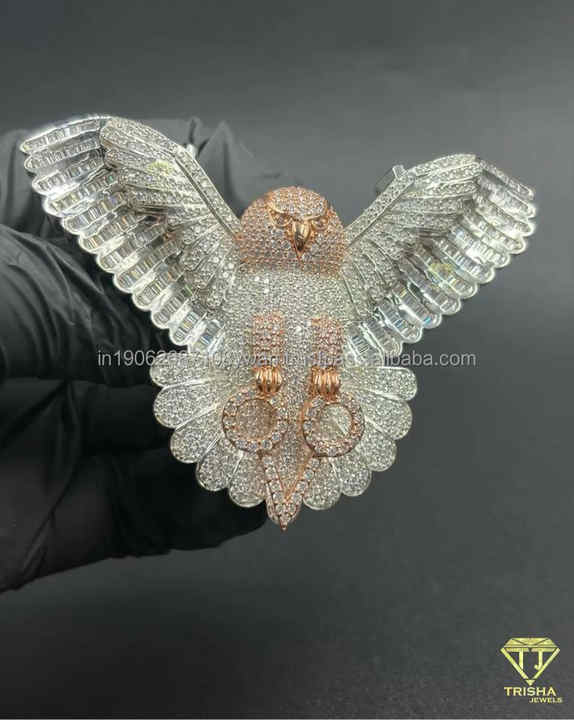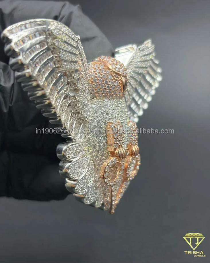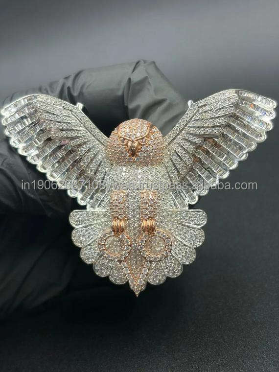 จี้รูปนกฮูกประดับเพชรโมอิสซาไนต์ แบรนด์ Trisha Jewels สไตล์ฮิปฮอป เงินแท้ 925 ชุบโรเดียมและทอง สำหรับทุกเพศ เครื่องประดับหรูหราโดดเด่น