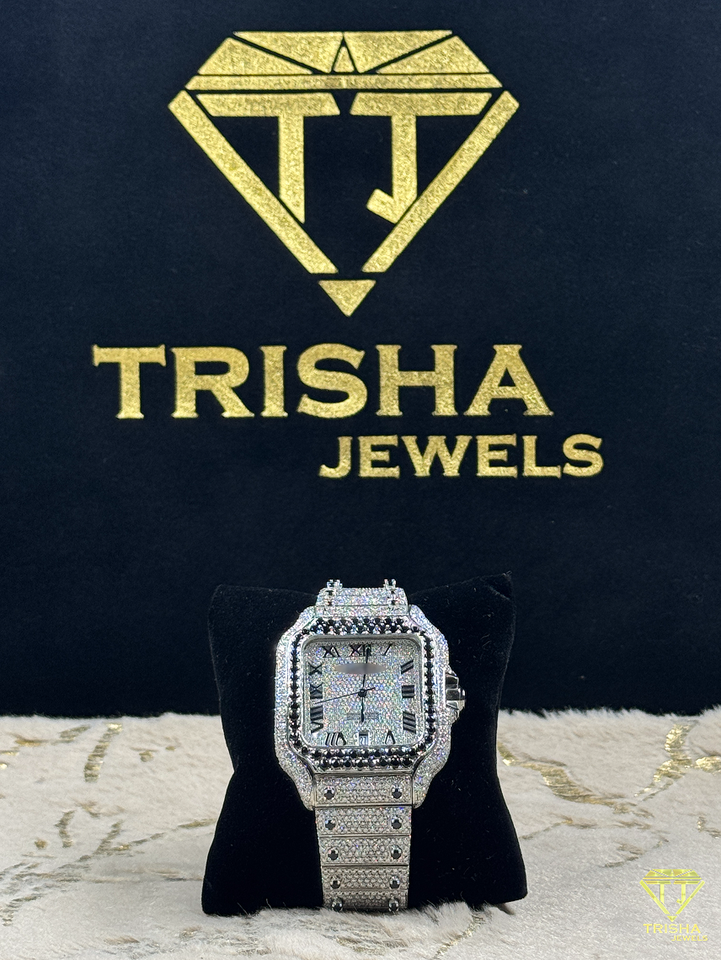อัญมณี trisha หรูหราสแควร์เต็มรูปแบบเย็นออกเพชรปู, การเคลื่อนไหวอัตโนมัติ, VVS ชัดเจน Bling hip hop ดู