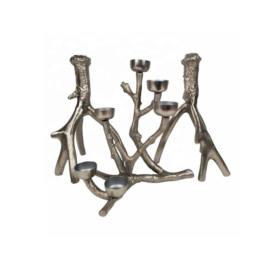 เชิงเทียนแบบโมเดิร์นทำจากอลูมิเนียมหล่อหนักแขนสามชั้นพร้อมเชิงเทียนบนโต๊ะในบ้านโบราณทำจากแก้ว