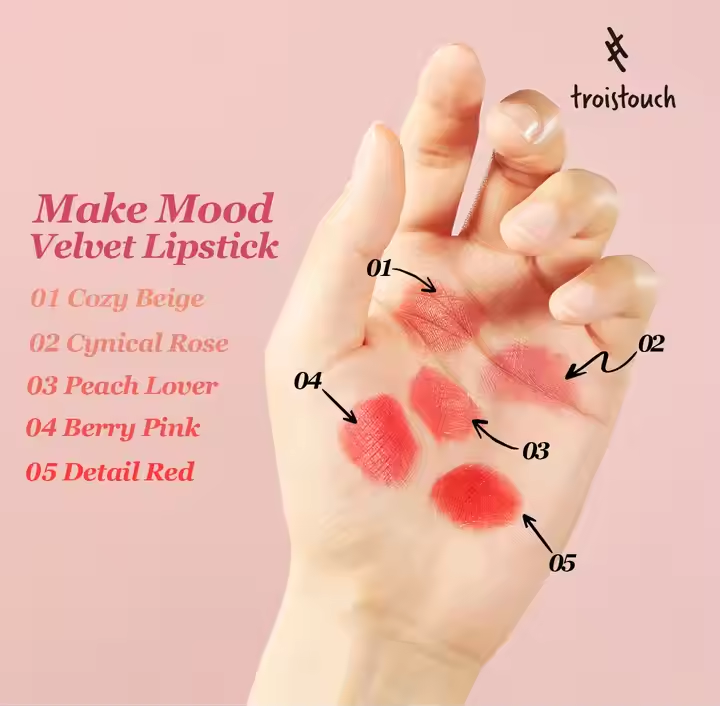 Troistouch ลิปสติกทำอารมณ์กำมะหยี่02 cynical Rose 5g ผลิตในเกาหลี