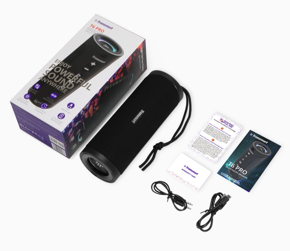 Tronsmart ลำโพงพกพาไร้สาย T6 Pro,ลำโพงพกพากำลังไฟถึง45วัตต์สามารถกันน้ำได้ IPX6สามารถใช้ได้24ชั่วโมง