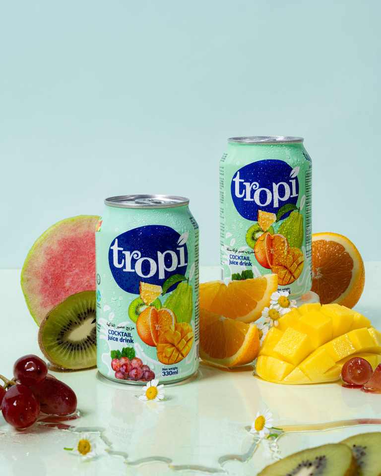น้ำผลไม้ทรอปิ 330 มล. กระป๋องอะลูมิเนียมทรงเตี้ย 100% น้ำผลไม้เข้มข้น ไขมันต่ำ รสชาติสดใหม่ คั้นสด ผ่านการฆ่าเชื้อ รสแตงโมและผลไม้รวม