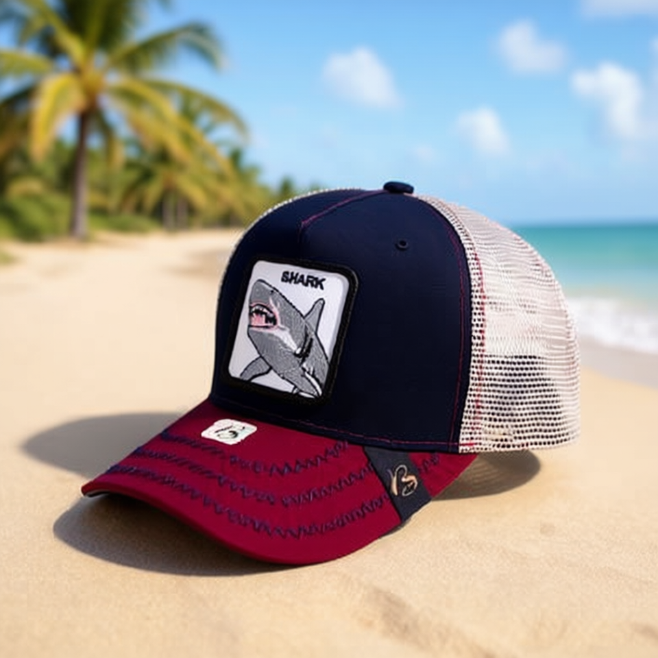 หมวกแก๊ปปักลายปลาฉลามทรอปิก 6 แผง ตาข่าย ปรับได้ ใส่ได้ทั้งชายหญิง ผู้ใหญ่ สไตล์ลำลอง สำหรับฤดูใบไม้ผลิและฤดูร้อน