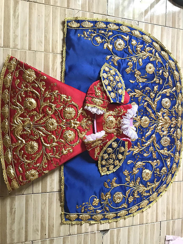 กระโปรงกำมะหยี่ปักลายพิเศษ Trousseau Mary Most Holy Queen สีทองอร่าม สำหรับงานปาร์ตี้ ซึมซับเหงื่อ แห้งเร็ว ฉลองครบรอบ 25 ปี