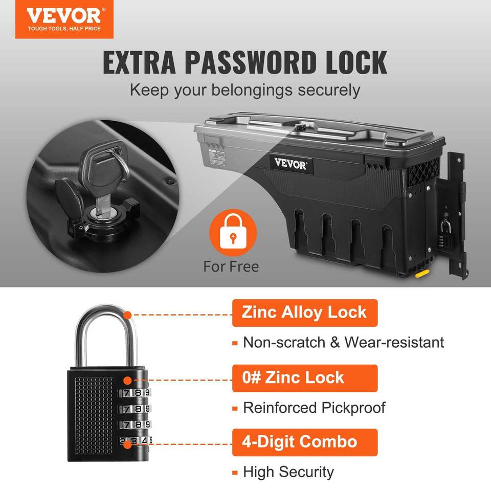 กล่องเก็บของท้ายรถบรรทุก 6.6 แกลลอน/25 ลิตร ABS แบบล็อคได้ พร้อมกุญแจรหัส กันน้ำ ทนทาน สำหรับรถฟอร์ด F-150-Passenger