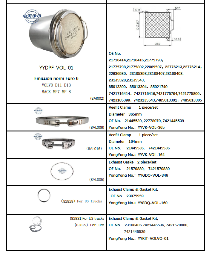 ตัวกรองดีเซล DPF แบบรังผึ้งเซรามิกใหม่ สำหรับรถบรรทุก VOLVO หมายเลขอะไหล่แท้ 21716414 21716416 85013300 85013304 85021740