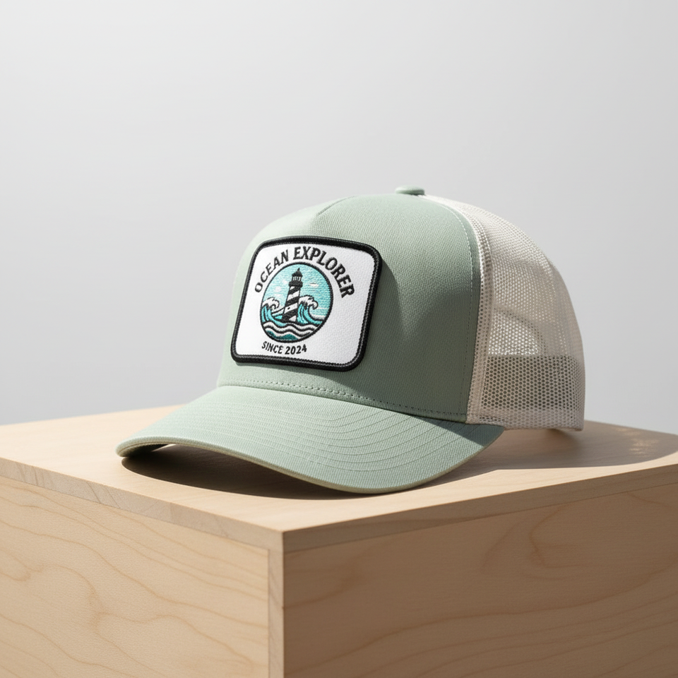 Trucker Cap with Embroidered Anchor Patch Adjustable Mesh Back Snapback Hat for Men Women Outdoor & Casual Wear