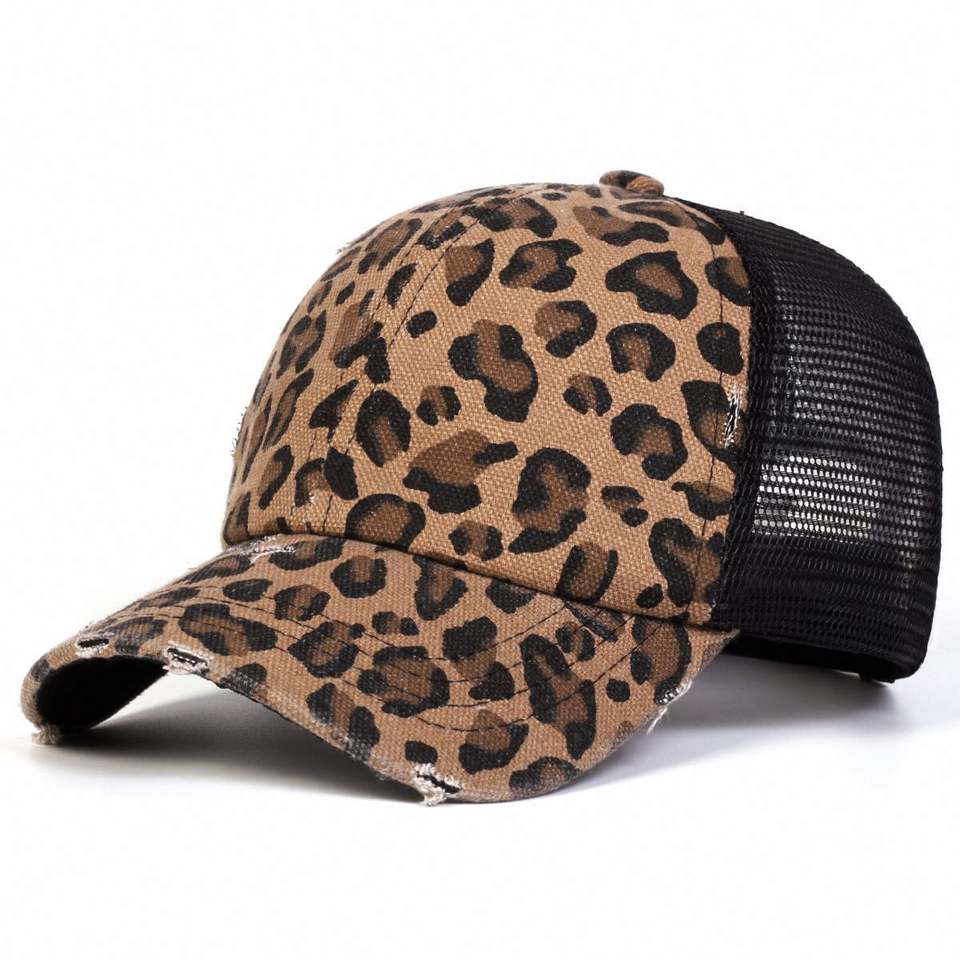 หมวกคนขับรถบรรทุกขายส่ง หมวกเบสบอลลายเสือดาวคุณภาพสูงแบบกำหนดเองได้ หมวก 6 แผง