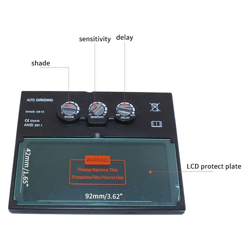 กระจกมองภาพสีจริง ระบบมองเห็นสีจริง แบตเตอรี่ LI ระบบปรับแสงอัตโนมัติ ฟิลเตอร์เชื่อมแบบปรับแสงอัตโนมัติ เลนส์กรองแสงเชื่อมแบบปรับแสงอัตโนมัติ กระจกมองภาพสีจริง