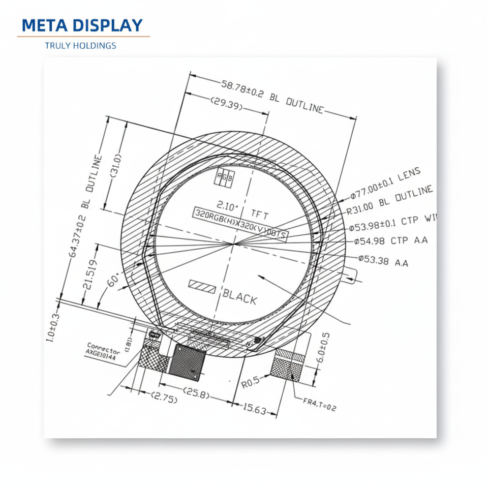จอ LCD TDA-QVGA0210A61222จริง2.1นิ้ว320x320 MIPI จอแสดงผลวงกลมความสว่างสูง