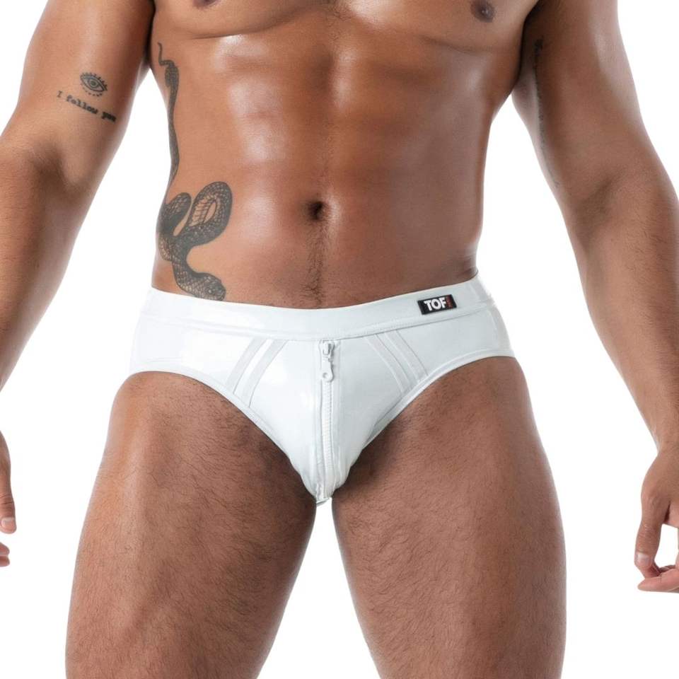 กางเกงบ็อกเซอร์ทรงสลิมฟิตสำหรับผู้ชายชุดเที่ยวคลับแวร์เนื้อยางผิวที่สองสีขาว