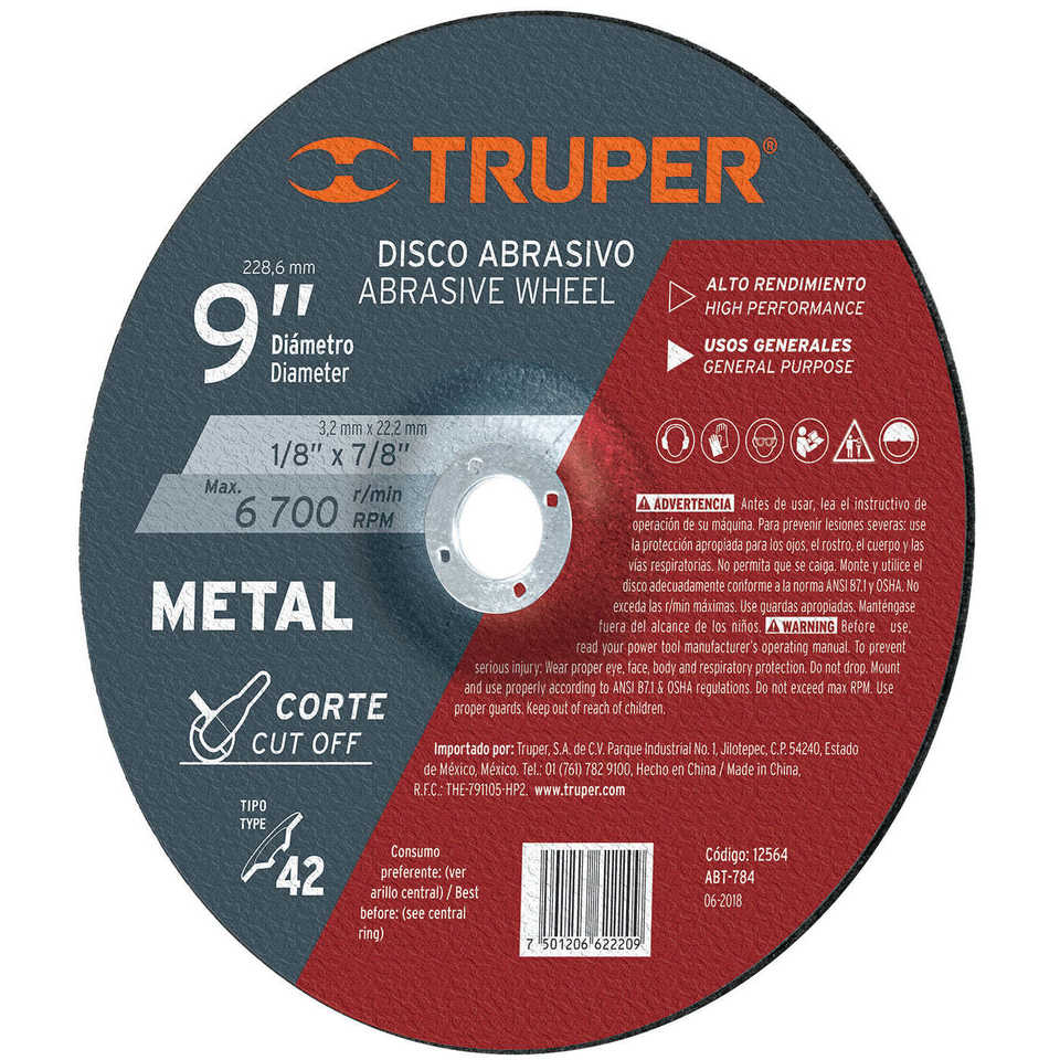 Truper ABT-784 Type 42 Metal Cutting Disc 9' Diameter